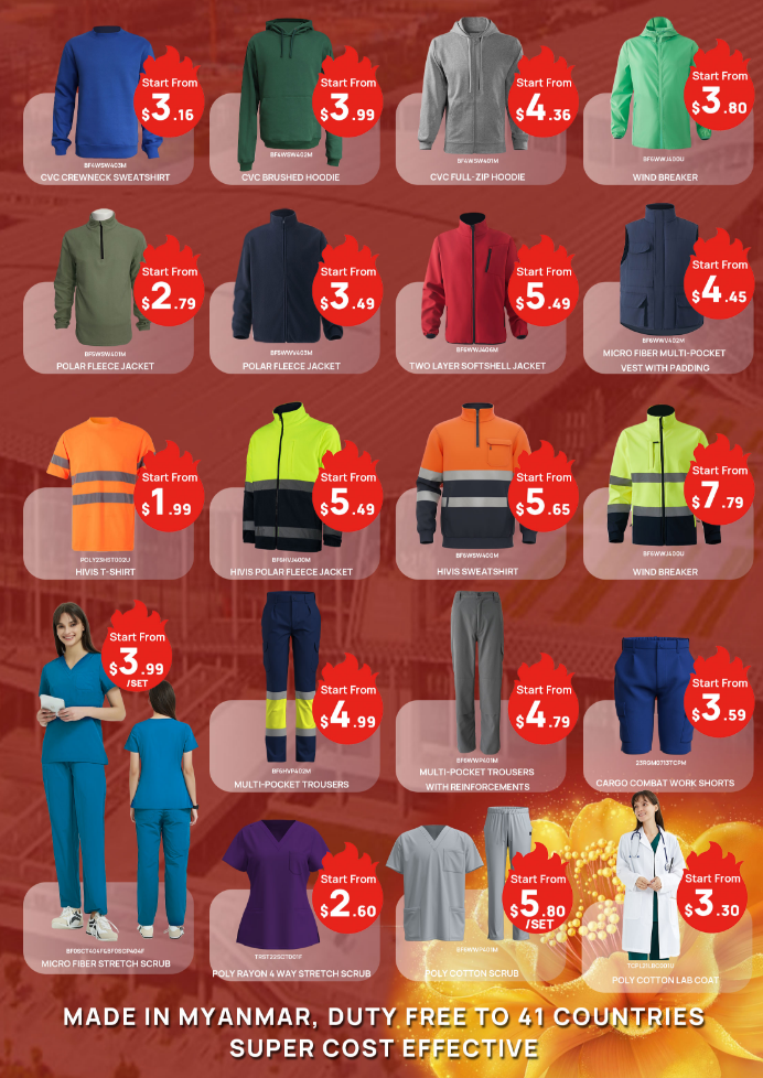 FUYI is a leading uniform company with over 60 years of experience in the industry. Our strong focus on quality and expertise in product craftsmanship has established us as a trusted name in the market. Our diverse product portfolio includes HIVIS series, softshell and fleece series, workwear uniforms, medical scrubs, security and military police uniforms, chef uniforms, flame retardant products, and more. We also offer a wide selection of functional fabrics to empower our partners. Specializing in OEM and ODM services, we have successfully served over 1000 uniform companies and established partnerships with over 500 retailers globally.Our commitment to excellence is reflected in our expansive reach, with products exported to approximately 80 countries worldwide. This global presence is supported by our dedicated team of 2000 employees. Our headquarter in China is home to 200 employees, while our factory in Myanmar employs 1500 individuals, and our fabric factory in China has a workforce of 300 employees. This robust team ensures that we maintain high standards across all stages of production.In recent years, our company has experienced significant growth. With an annual sales growth of 50% for three consecutive years, our production output in 2022 reached an impressive 5 million units, and our total sales hit $50 million. This growth is a testament to our unwavering dedication to quality, innovation, and customer satisfaction.At FUYI, we are also deeply committed to social responsibility and sustainable development. Our strategic initiatives are designed to positively impact the communities we serve and the environment. This holistic approach to business has not only enhanced our reputation but also strengthened our relationships with partners and customers around the world.