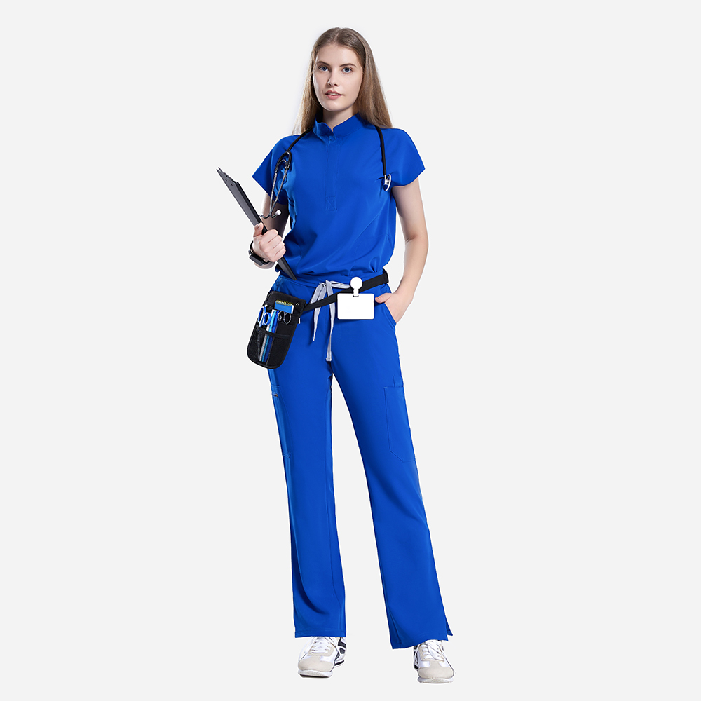 Furthermore, we offer OEM and ODM services, allowing our clients to customize their uniforms according to their specific requirements. Our experienced team works closely with customers to understand their needs and create personalized designs. So that we can deliver large orders promptly with our efficient supply chain, ensuring that healthcare facilities get the necessary Royal Blue Scrub Sets.