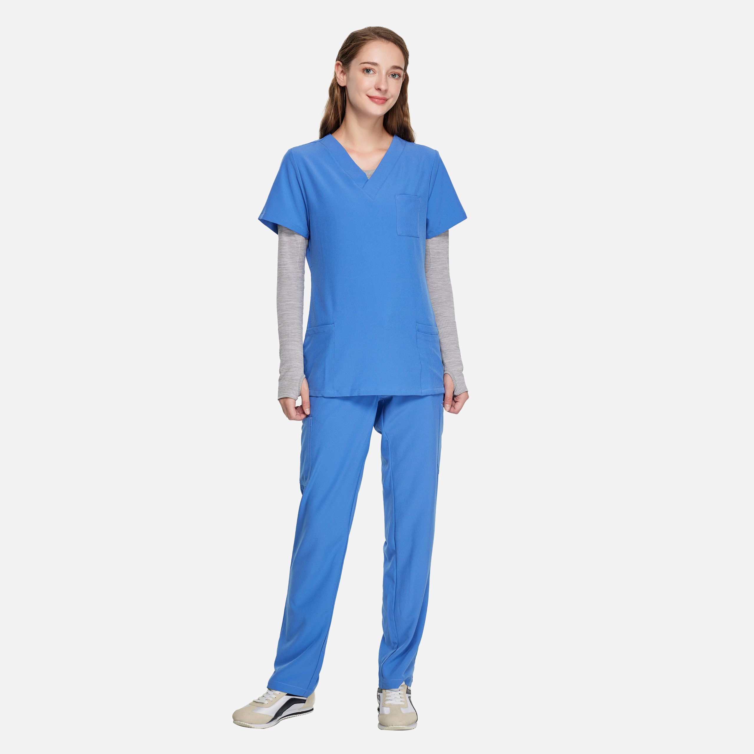 Furthermore, we offer OEM and ODM services, allowing our clients to customize their uniforms according to their specific requirements. Our experienced team works closely with customers to understand their needs and create personalized designs. So that we can deliver large orders promptly with our efficient supply chain, ensuring that healthcare facilities get the necessary Scrub Joggers Women Scrubs Set.