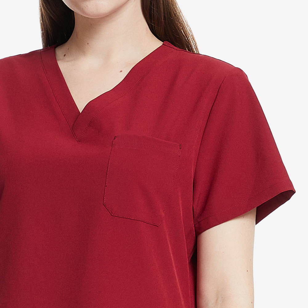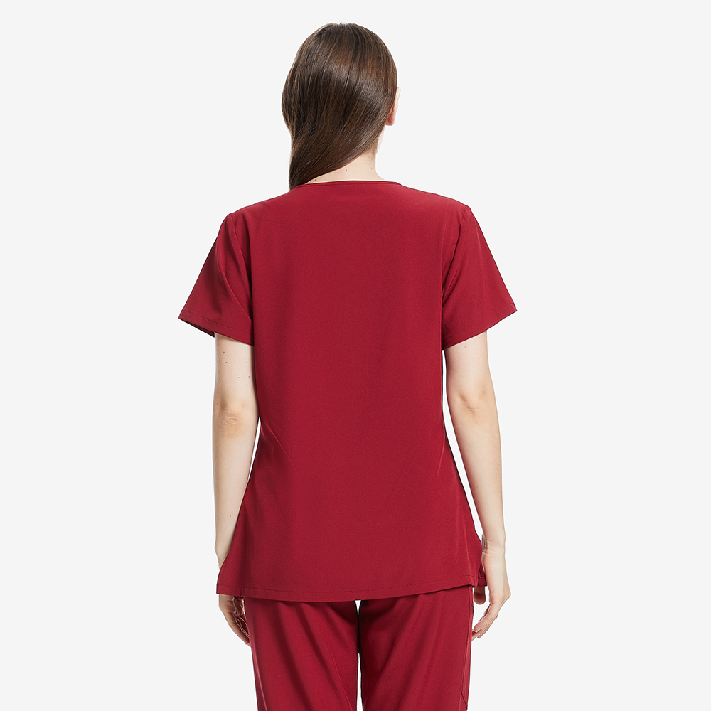 Furthermore, we offer OEM and ODM services, allowing our clients to customize their uniforms according to their specific requirements. Our experienced team works closely with customers to understand their needs and create personalized designs. So that we can deliver large orders promptly with our efficient supply chain, ensuring that healthcare facilities get the necessary Burgundy Scrubs Set.