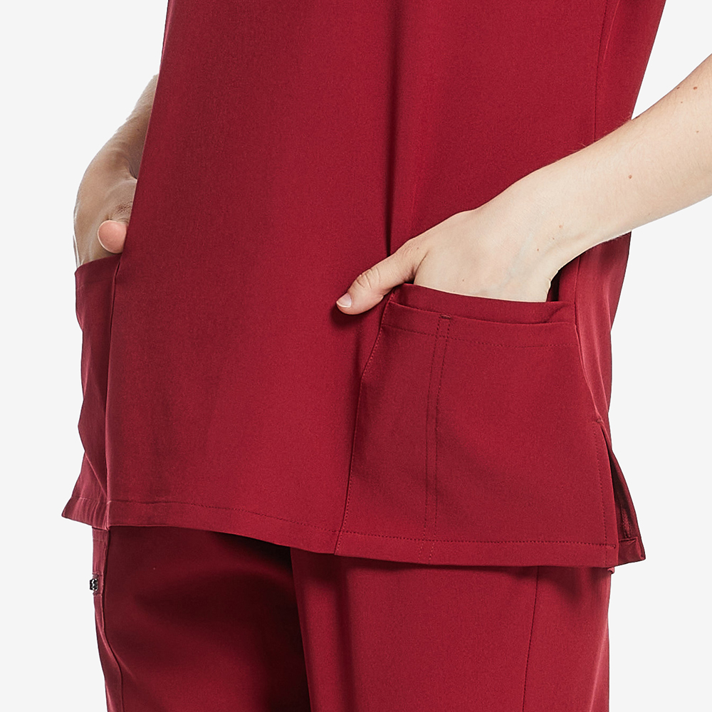 Fuyi Group always provides Burgundy Scrubs Set with the utmost comfort and breathability in mind. Made from high-quality materials, the scrubs allow healthcare professionals to work with ease, even during long shifts. The fabric is lightweight and allows for proper airflow, ensuring that the wearer stays cool and comfortable throughout the day. Our scrubs are also tailored to provide a professional and stylish look, making healthcare workers feel confident and presentable.