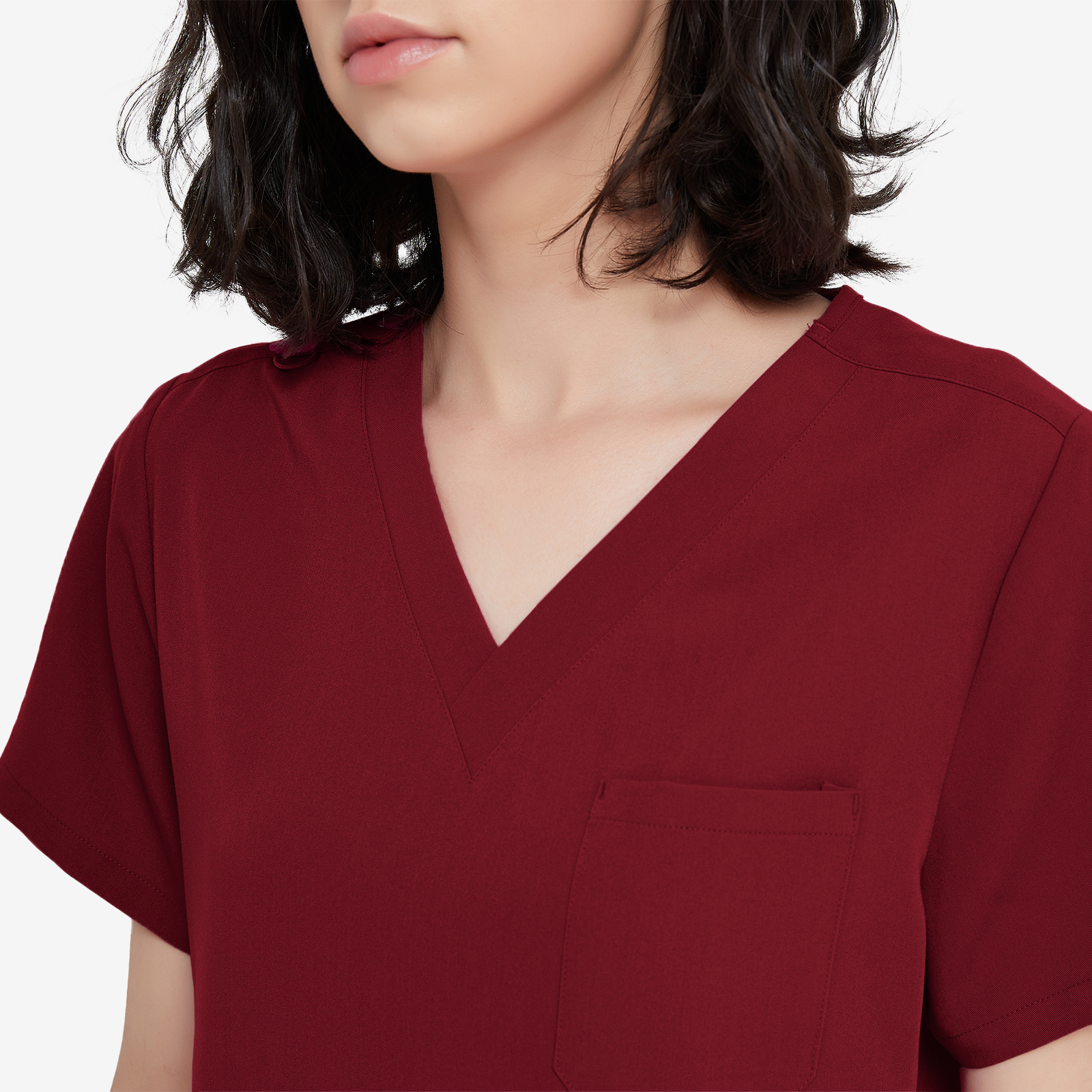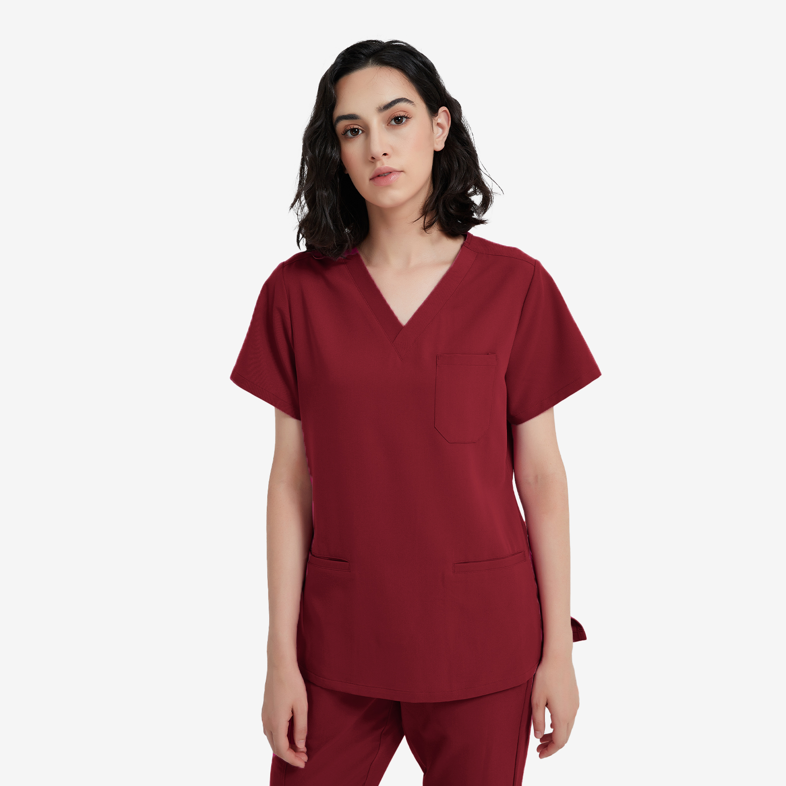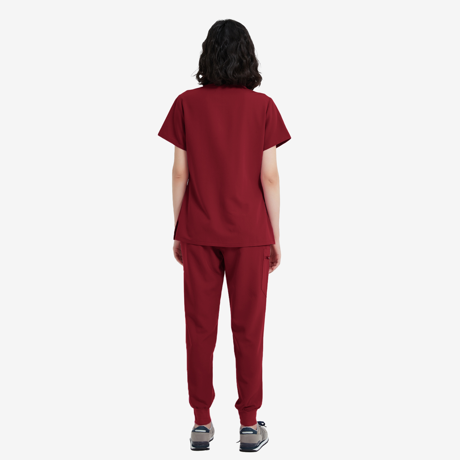 Furthermore, we offer OEM and ODM services, allowing our clients to customize their uniforms according to their specific requirements. Our experienced team works closely with customers to understand their needs and create personalized designs. So that we can deliver large orders promptly with our efficient supply chain, ensuring that healthcare facilities get the necessary Burgundy Scrubs Set.