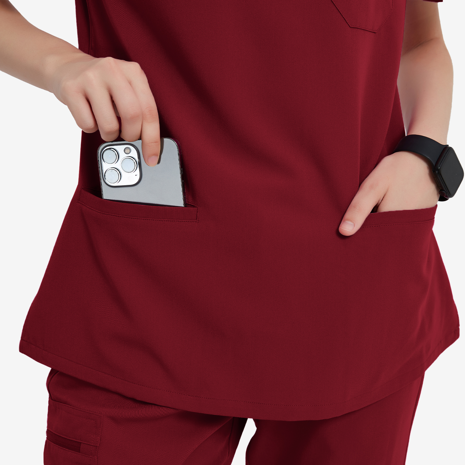 Fuyi Group always provides Burgundy Scrubs Set with the utmost comfort and breathability in mind. Made from high-quality materials, the scrubs allow healthcare professionals to work with ease, even during long shifts. The fabric is lightweight and allows for proper airflow, ensuring that the wearer stays cool and comfortable throughout the day. Our scrubs are also tailored to provide a professional and stylish look, making healthcare workers feel confident and presentable.