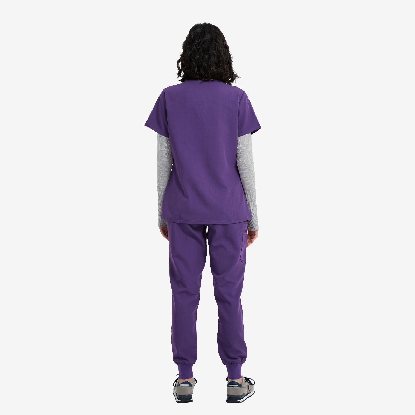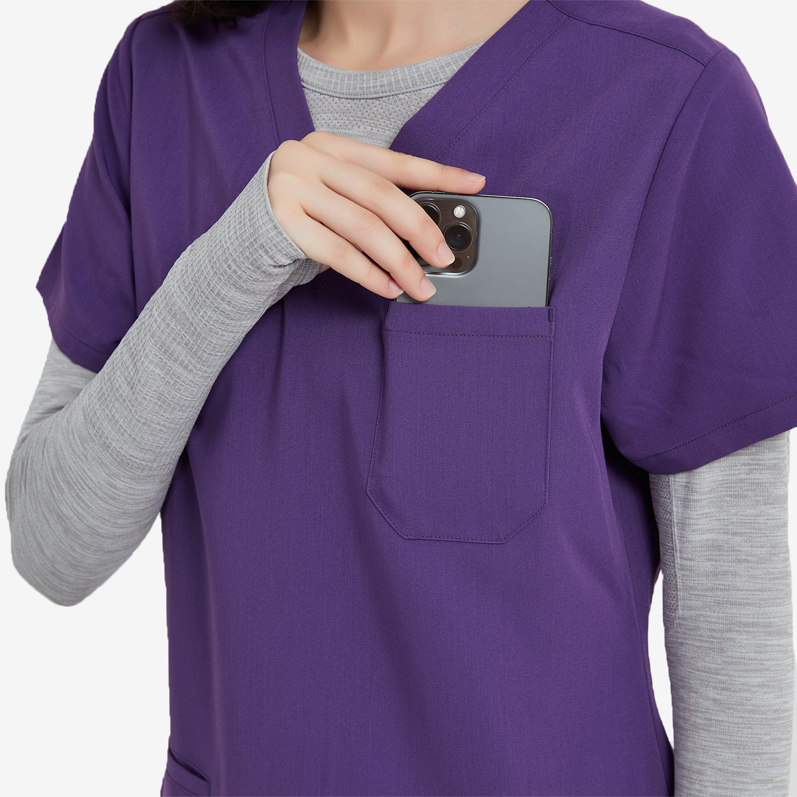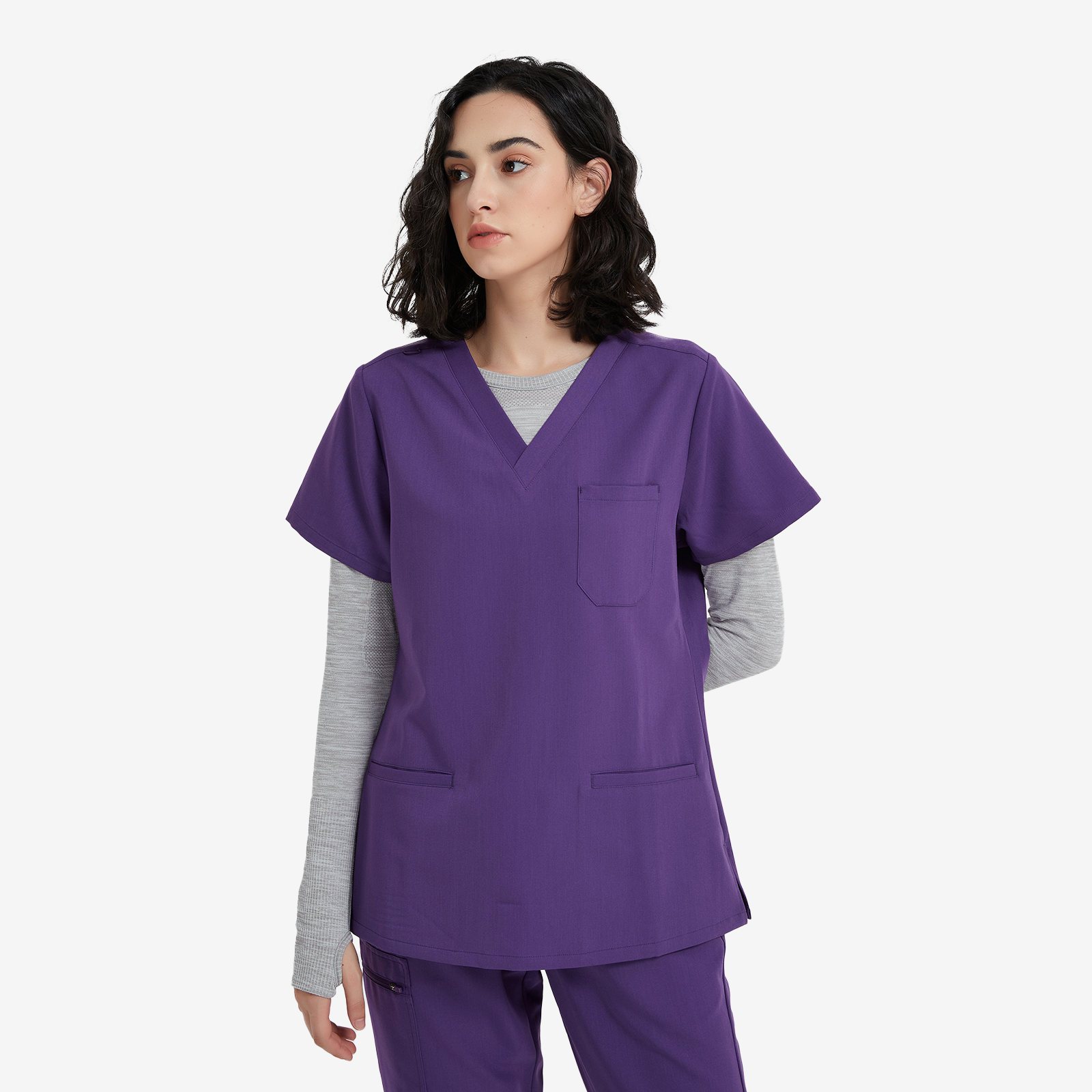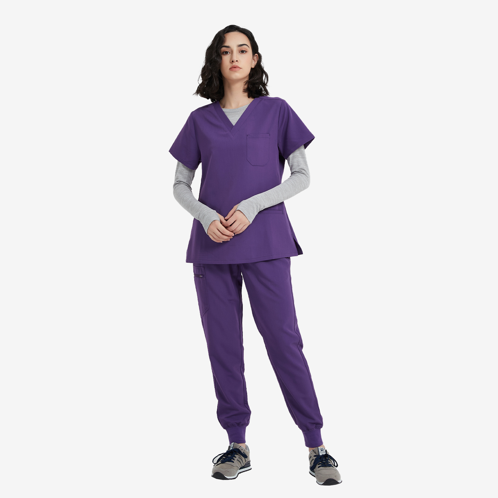 Furthermore, we offer OEM and ODM services, allowing our clients to customize their uniforms according to their specific requirements. Our experienced team works closely with customers to understand their needs and create personalized designs. So that we can deliver large orders promptly with our efficient supply chain, ensuring that healthcare facilities get the necessary Eggplant Scrubs.