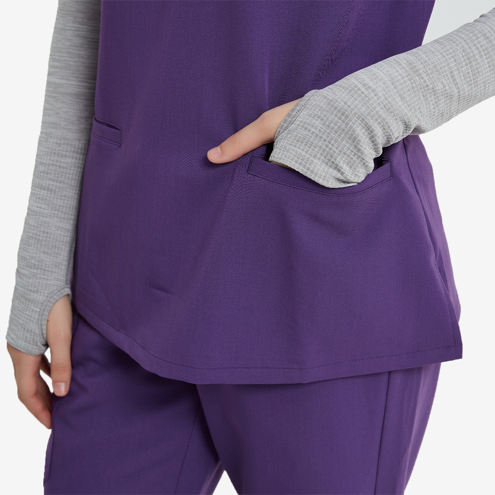 Fuyi Group always provides Eggplant Scrubs with the utmost comfort and breathability in mind. Made from high-quality materials, the scrubs allow healthcare professionals to work with ease, even during long shifts. The fabric is lightweight and allows for proper airflow, ensuring that the wearer stays cool and comfortable throughout the day. Our scrubs are also tailored to provide a professional and stylish look, making healthcare workers feel confident and presentable.