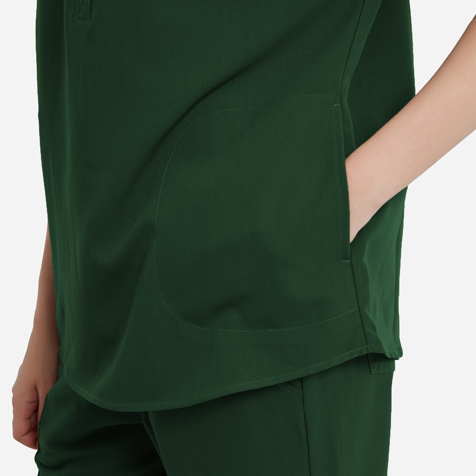 Furthermore, we offer OEM and ODM services, allowing our clients to customize their uniforms according to their specific requirements. Our experienced team works closely with customers to understand their needs and create personalized designs. So that we can deliver large orders promptly with our efficient supply chain, ensuring that healthcare facilities get the necessary Hunter Green Scrubs.