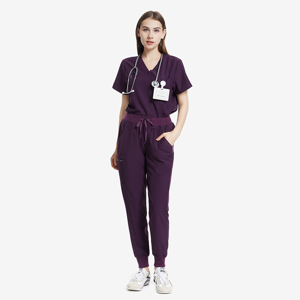 Furthermore, we offer OEM and ODM services, allowing our clients to customize their uniforms according to their specific requirements. Our experienced team works closely with customers to understand their needs and create personalized designs. So that we can deliver large orders promptly with our efficient supply chain, ensuring that healthcare facilities get the necessary Dark Purple Scrubs.