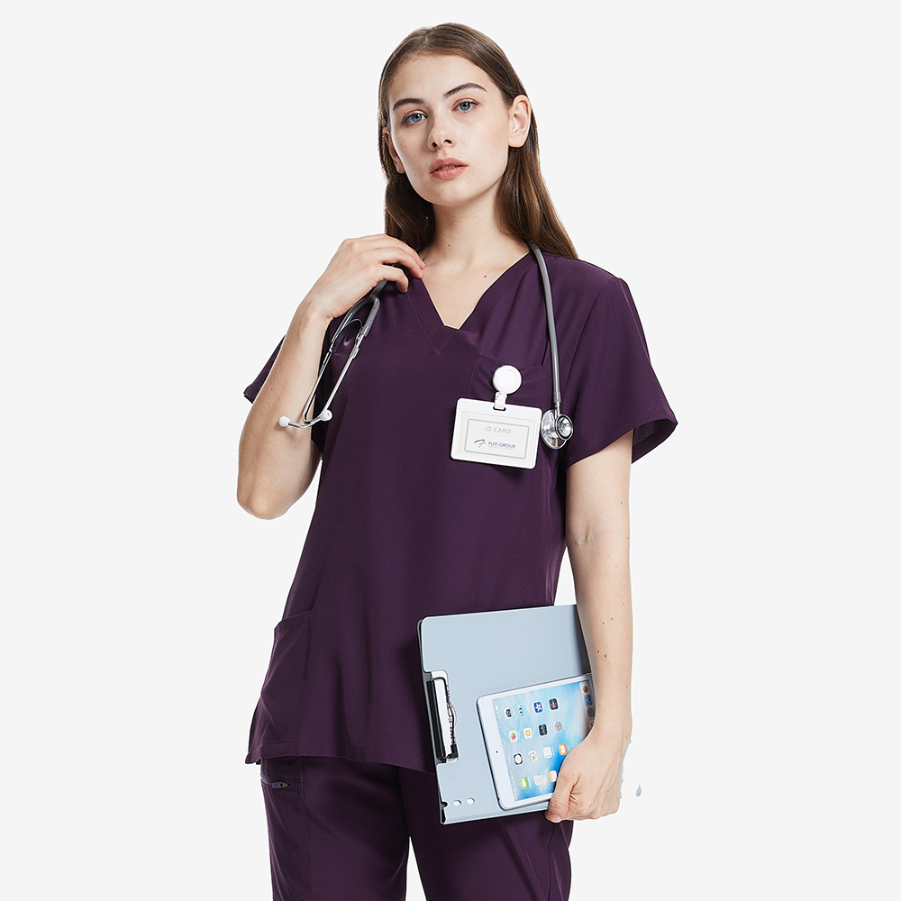 Fuyi Group always provides Dark Purple Scrubs with the utmost comfort and breathability in mind. Made from high-quality materials, the scrubs allow healthcare professionals to work with ease, even during long shifts. The fabric is lightweight and allows for proper airflow, ensuring that the wearer stays cool and comfortable throughout the day. Our scrubs are also tailored to provide a professional and stylish look, making healthcare workers feel confident and presentable.